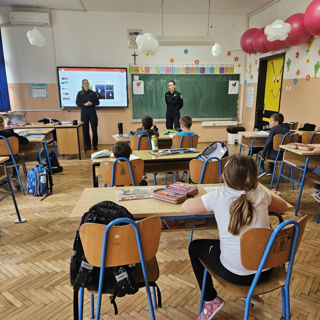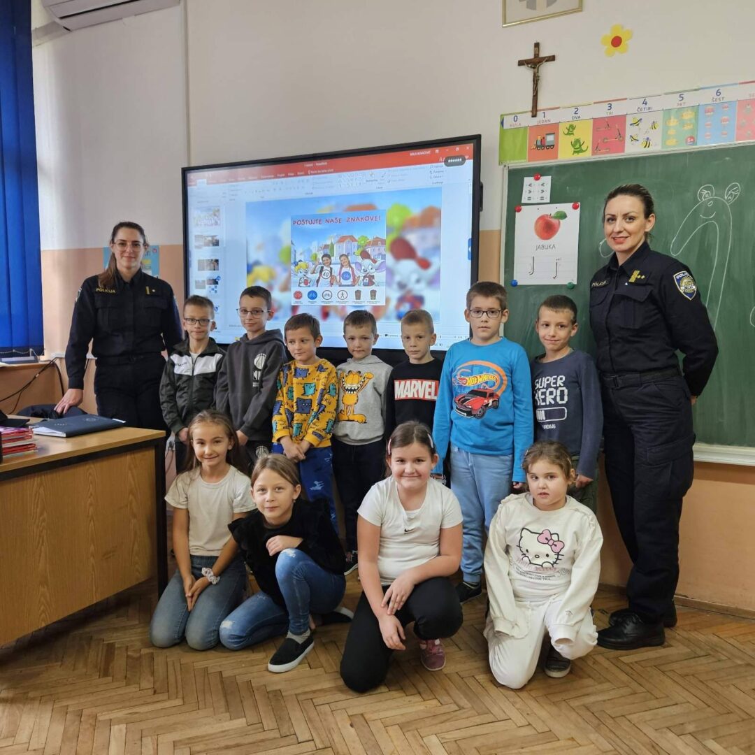 Učenike 1. razreda posjetile su policijske službenice. Kroz zanimljiv razgovor i praktične primjere učenici su naučili i ponovili važna prometna pravila. Podsjetili su se kako sigurno prelaziti cestu, prepoznati prometne znakove i ponašati se kao odgovorni sudionici u prometu.