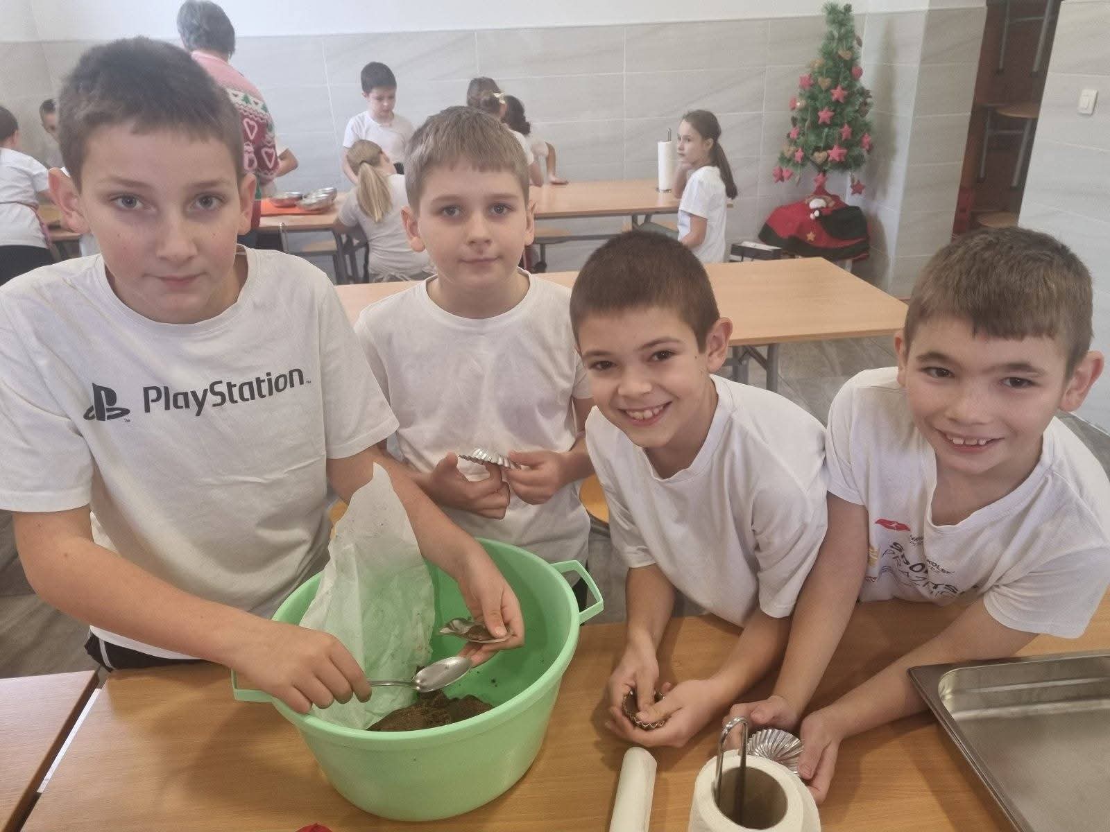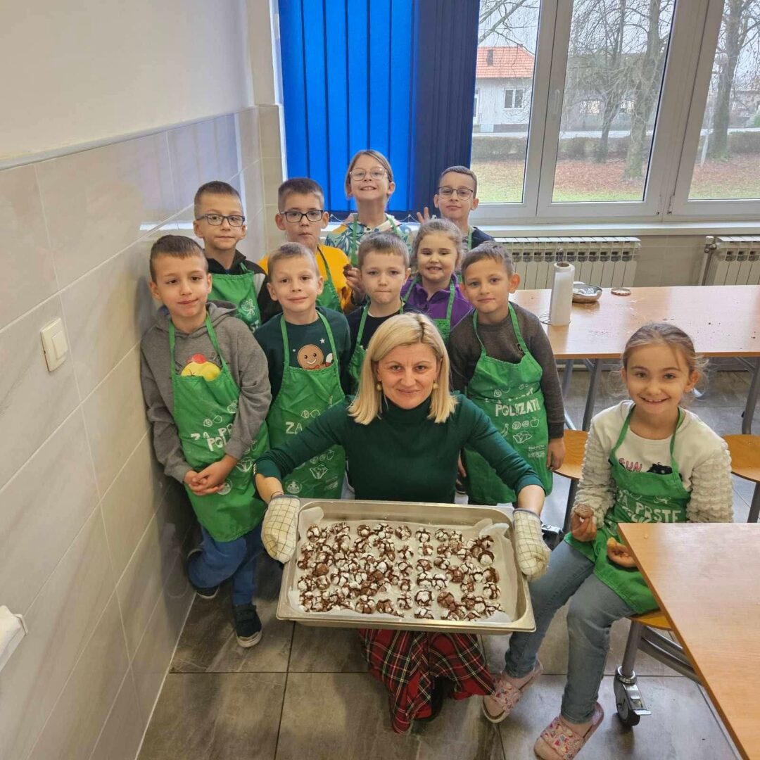 Učenici razredne nastave sudjelovali su u prigodnoj božićnoj radionici tijekom koje su, uz pomoć školske kuharice i svojih učiteljica, pekli božićne kolače. Uz puno veselja, suradnje i blagdanskog raspoloženja, učenici su vrijedno mijesili, oblikovali i pekli kolače te pritom učili o zajedničkom radu i tradiciji.