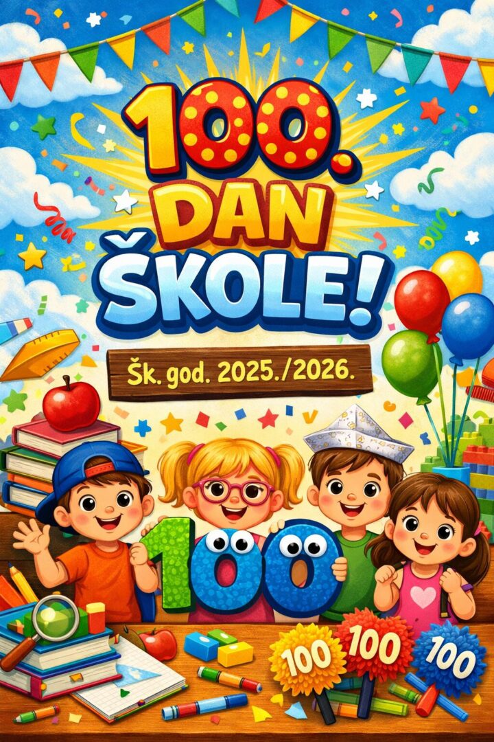 U sklopu obilježavanja 100. dana škole u školskoj godini 2025./2026., naši su učenici na satu Matematike istraživali zanimljivosti o broju 100 i pokazali koliko znanje može biti zabavno.