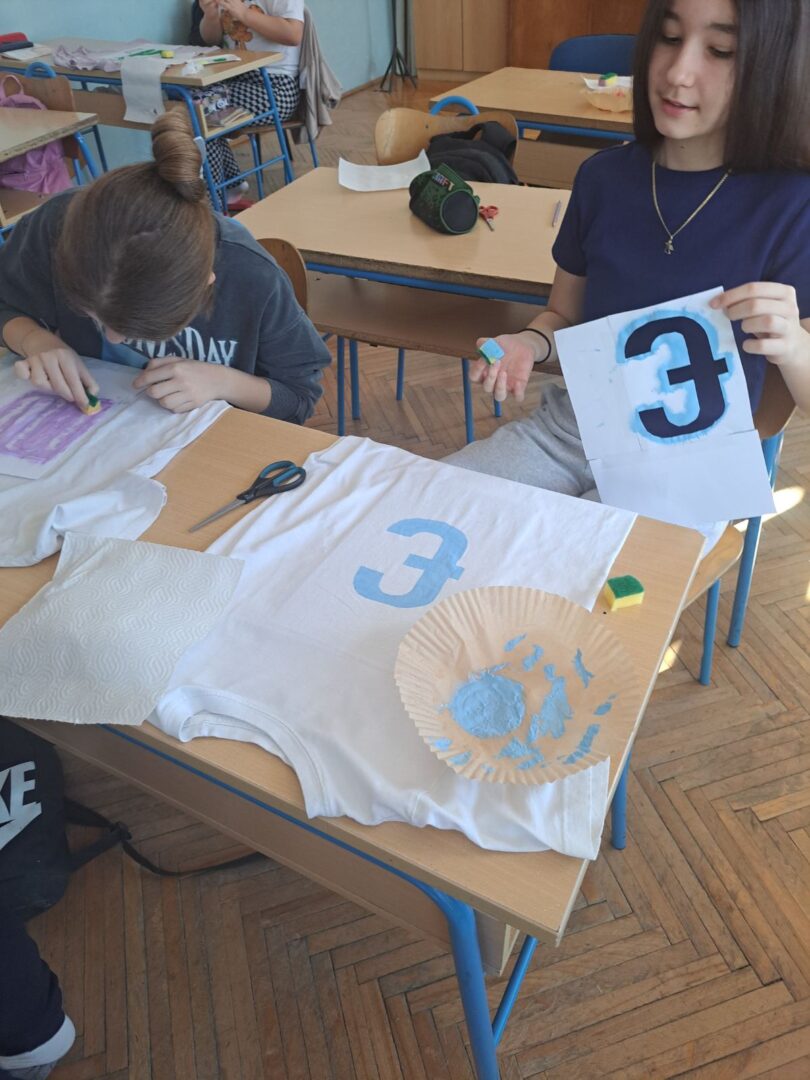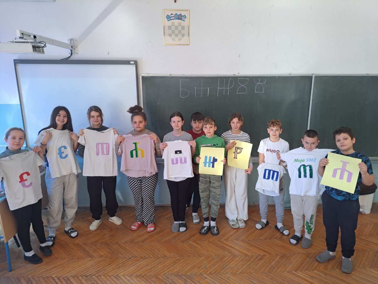 Središnji dio obilježavanja bila je kreativna radionica oslikavanja majica akrilnim bojama. Svaki je učenik na svoju majicu ispisao prvo slovo svojega imena – ali glagoljicom! Uz malo strpljenja, preciznosti i puno mašte nastale su jedinstvene i originalne majice na koje su učenici bili iznimno ponosni.