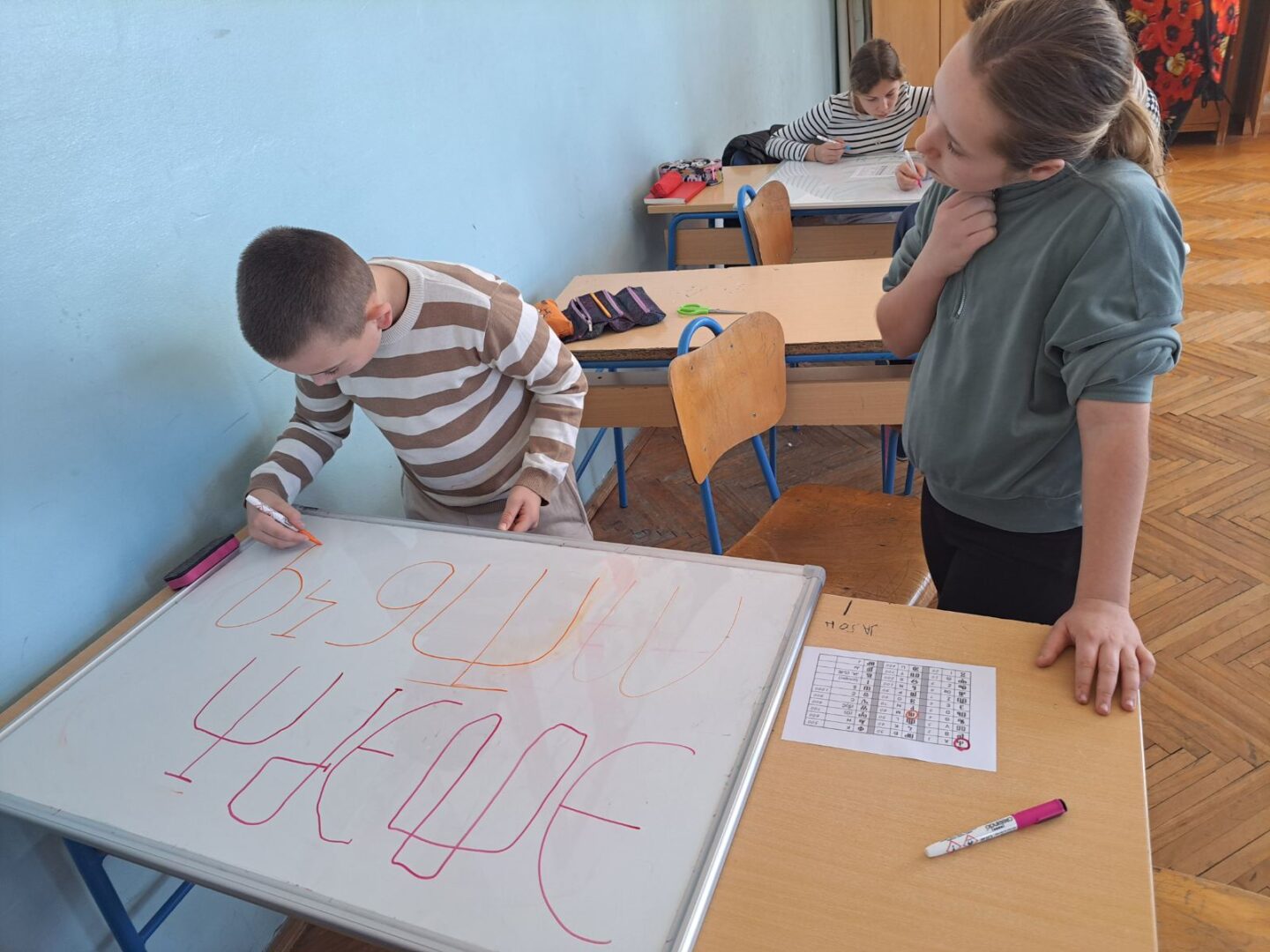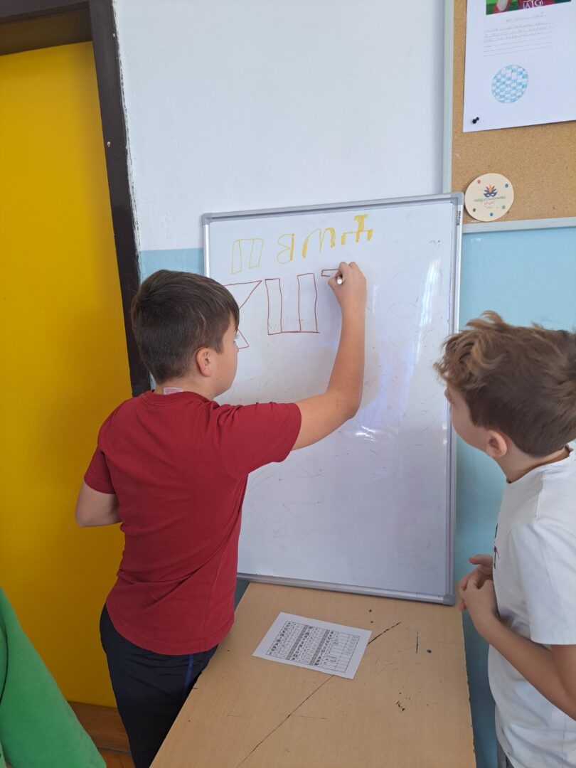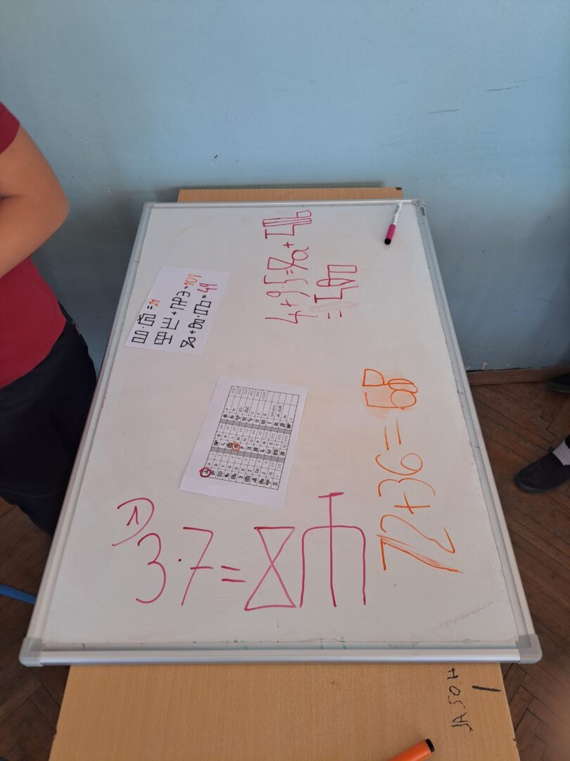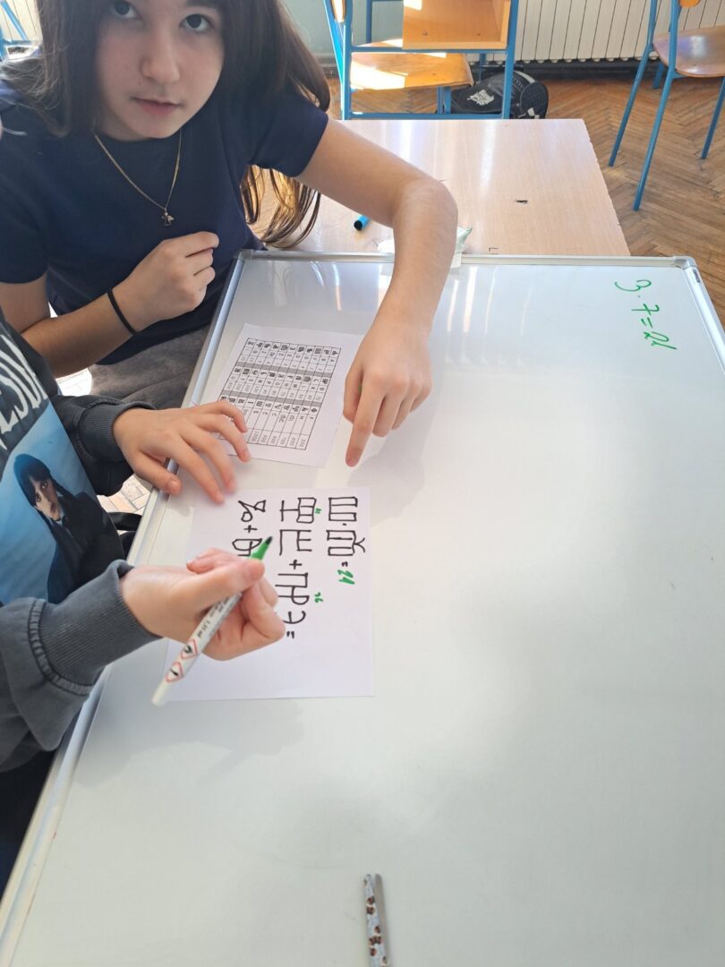 Osim likovnog izražavanja, glagoljicu smo povezali i s matematikom. Učenici su rješavali matematičke zadatke zadane glagoljicom, čime su na zanimljiv način spojili jezik, povijest i logičko razmišljanje. Poseban izazov bio je najprije „dešifrirati” tekst zadatka, a zatim točno izračunati rješenje.