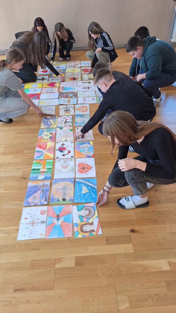 Vrijedne ruke naših učenika još jednom su se pokazale u kreativnom izrazavanju kroz crtež. Ovaj put je to bilo za likovni natječaj povodom susreta hrvatske katoličke mladeži u Požegi 2. i 3. svibnja ove godine, a likovni radovi naših učenika će između ostalih također krasiti ulice Požege ta dva dana. Svakako još jedan veliki uspjeh vrijednih ruku iz naših školskih klupa. Vidimo se u Požegi!